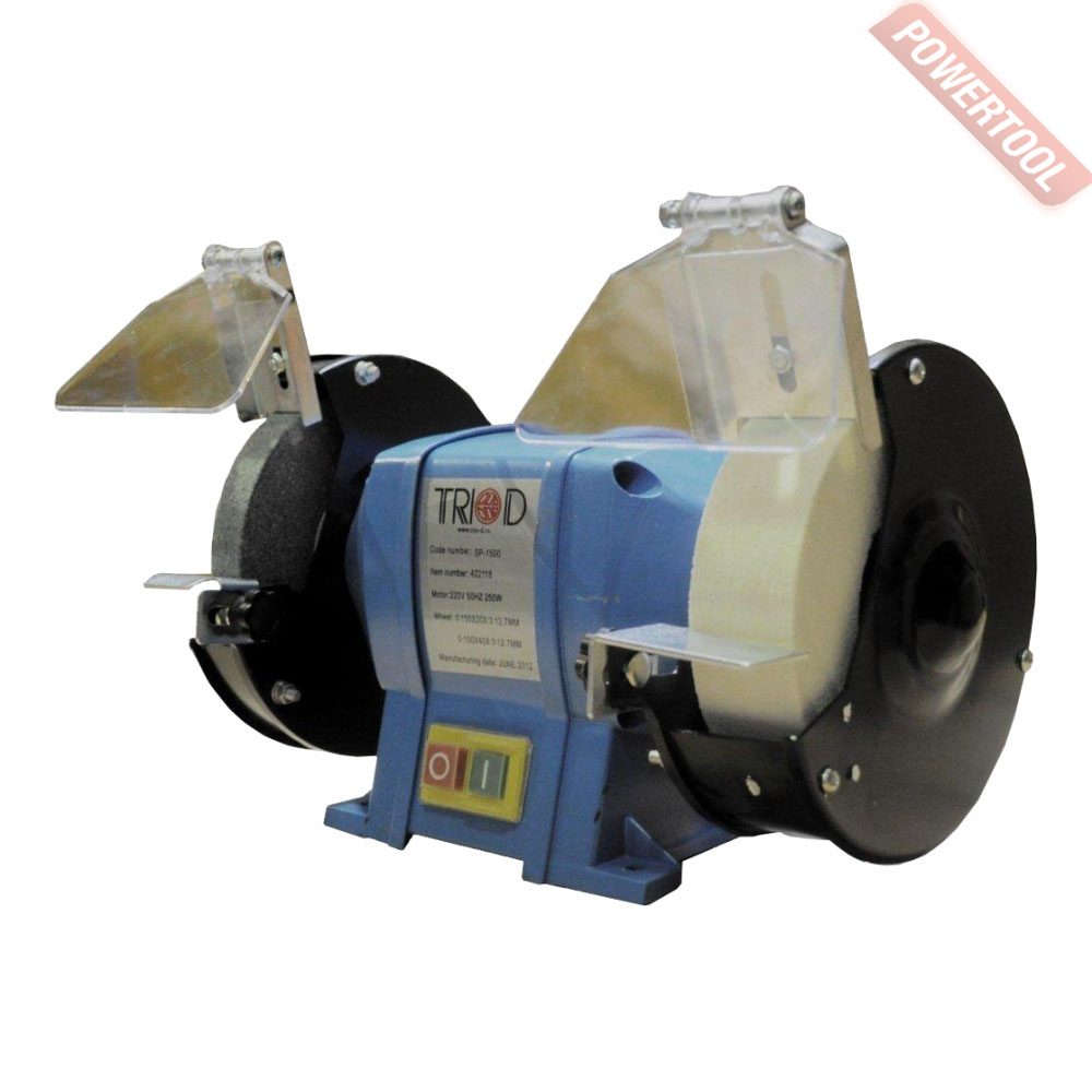 Заточной станок TRIOD SP-1500 предназначен для шлифования металлических деталей, компонентов и для заточки инструментов (свёрел, ножей, садовых инструментов и т.д.). В соответствии с используемым шлифовальным кругом на этом станке можно проводить обработку различных материалов. Данный станок широко используется в условиях мелкосерийного производства, в ремонтных цехах, в слесарных и столярных мастерских, на складах и т.п.